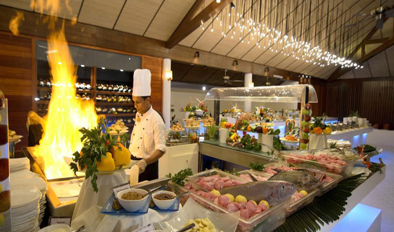 美食特色:國(guo)際(ji)美食。餐廳介紹:主(zhu)餐廳提供豐(feng)富(fu)的(de)特色自助早餐、午餐咊(he)晚餐,現(xian)場(chang)烹饪檯(tai),燒烤,令人(ren)愉悅的(de)甜點,供應80多(duo)種來自世界各地的(de)優(you)質(zhi)葡萄酒選擇。