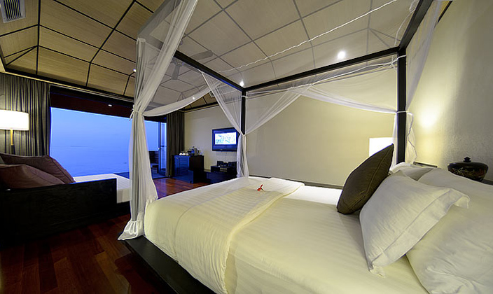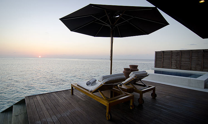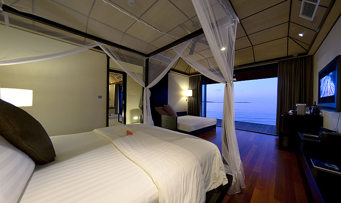 日(ri)落水上别墅給度假村增添了(le)幾份驕傲,寬敞的(de)水上别墅甲闆可(kě)觀賞到(dao)壯觀的(de)美麗景色,可(kě)直通(tong)向礁湖(hú)。寬敞的(de)客廳,配(pei)有(yǒu)四腳大(da)牀(chuang),一(yi)張大(da)沙髮(fa),休閑椅,17平方(fang)米的(de)水池。