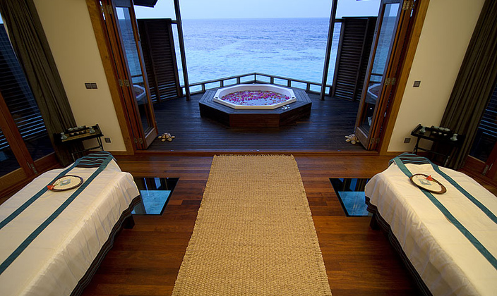 在(zai)莉莉島的(de)Spa水療室中(zhong)可(kě)欣賞潟湖(hú)景觀,傾聽海浪的(de)聲音,透過(guo)Spa館的(de)玻璃地面欣賞魚群遊來遊去。同時,由專(zhuan)業的(de)按摩師爲(wei)您緩解身體(ti)的(de)...查看更多(duo)